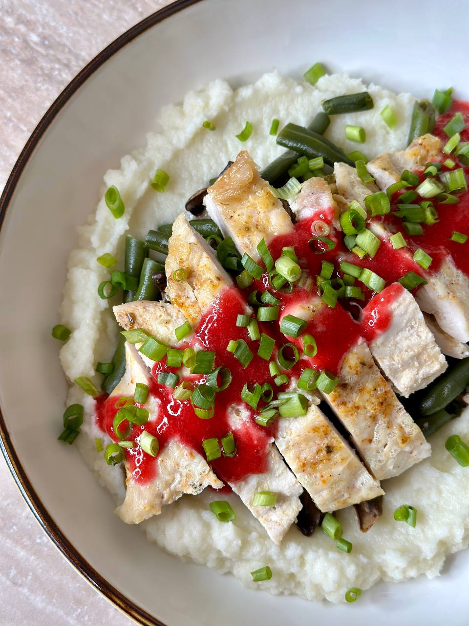 Пюре из цветной капусты с тефтельками и томатном соусе